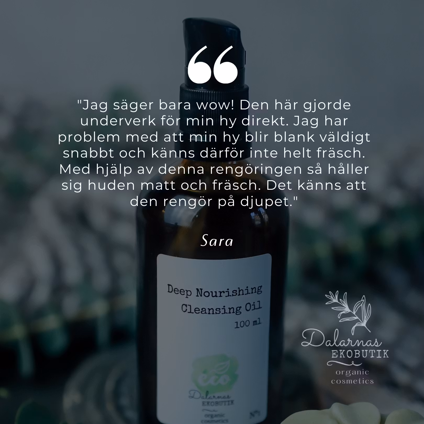 Deep Nourishing Cleansing Oil är mycket rik på A-vitamin och A-vitaminsyra, retinsyra, i kombination med en hög andel essentiella fettsyror, fytosteroler och karotenoider som är vårdar huden. Appliceras dagligen på kvällen på nytvättat, lätt fuktat ansikte.