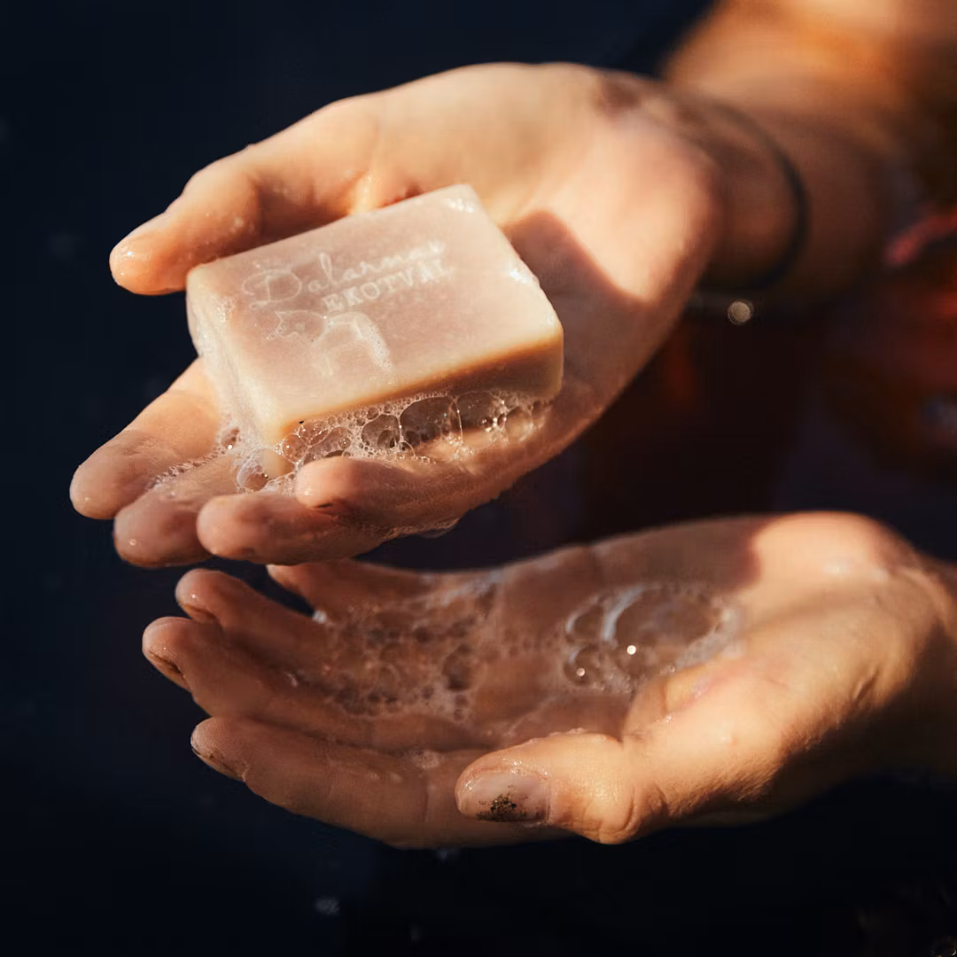 Tvål tillverkad på gammalt hantverksvis i Dalarna; ekologiska och veganska ingredienser.