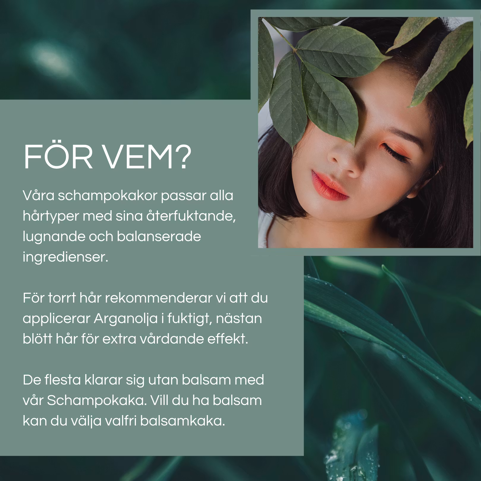 1 Schampokaka = ca 1500 ml flytande schampo och balsam (räcker för ca 120 tvättar med rätt skötsel och förvaring) Vi rekommenderar att du förvarar schampokakan på en luffakudde om du har den i duschen eller i en förvaringsburk om den är oanvänd, så att den förblir torr och inte fuktig.